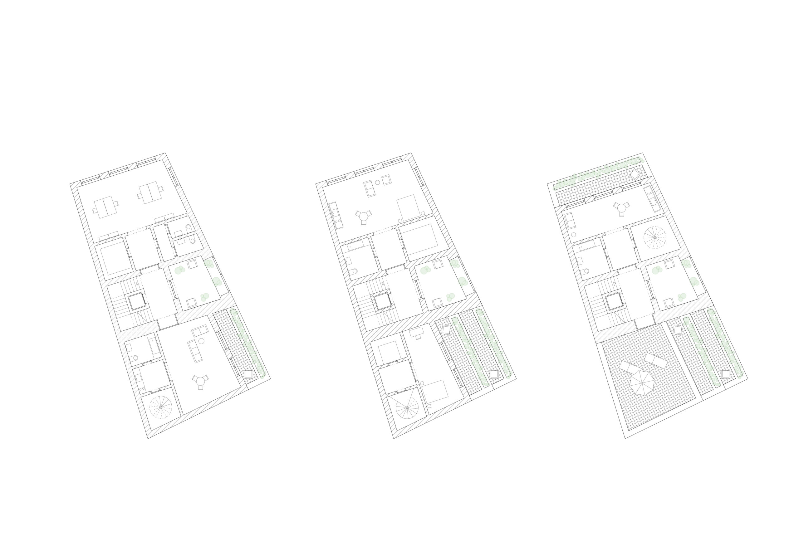 Jede Wohnung bietet den Bewohnern eine persönliche Oase mitten in der Stadt. Lange, großzügige Terrassen, ausgestattet mit integrierten Hochbeeten in den Brüstungen, ermöglichen den Bewohnern, einen Hauch von Natur direkt vor ihrer Haustür zu genießen. In den kühleren Wintermonaten fungieren gemeinschaftlich genutzte Loggien, üppig mit Pflanzen bestückt, als Ersatz für die Terrassen und bringen das ganze Jahr über ein Stück Grün ins Gebäude.